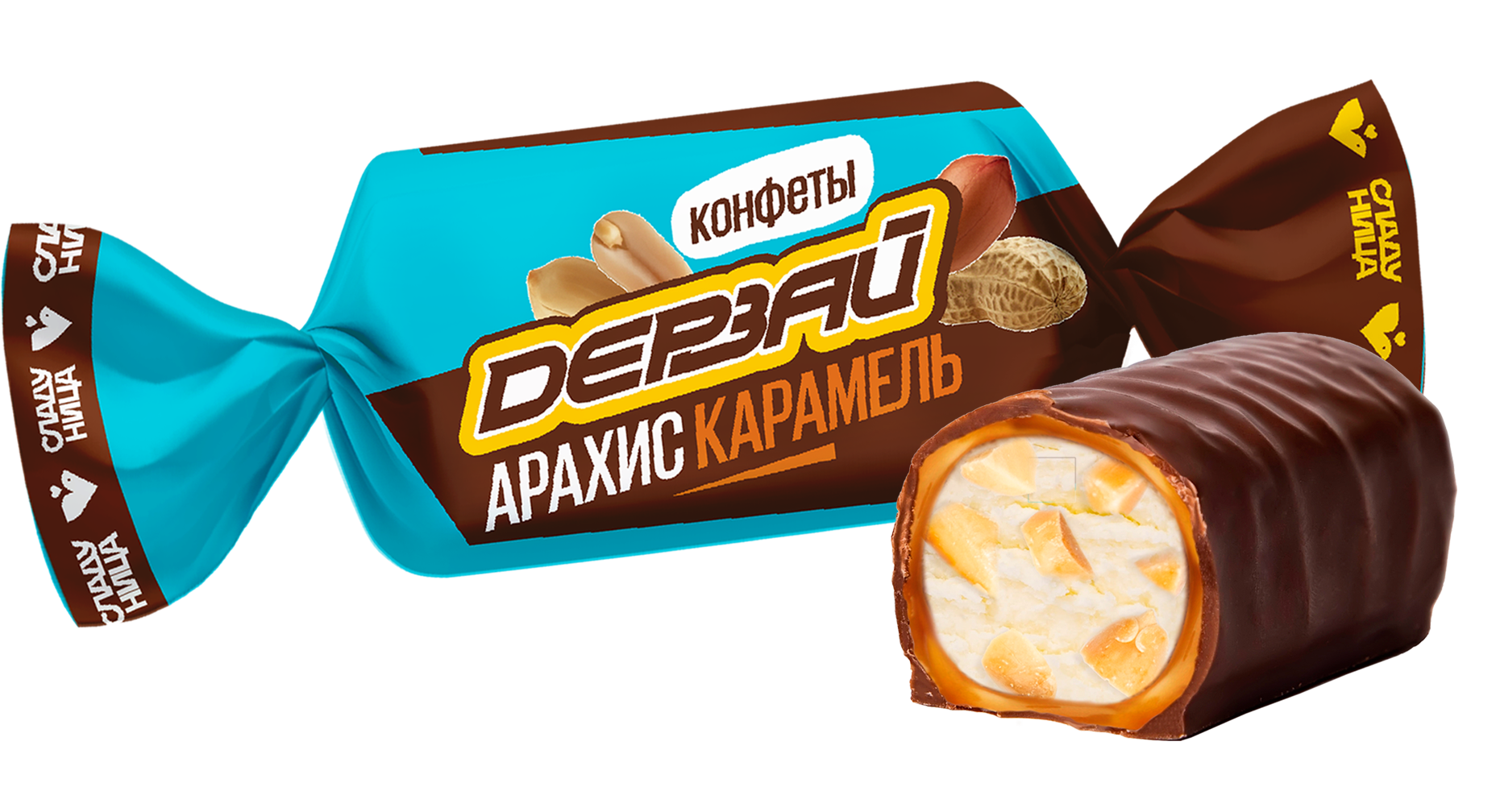 Конфета - заряжена энергией! В составе арахис, мягкая карамель, какао и молочная глазурь - настоящая батарейка, способная подкрепить и поднять настроение на весь день!